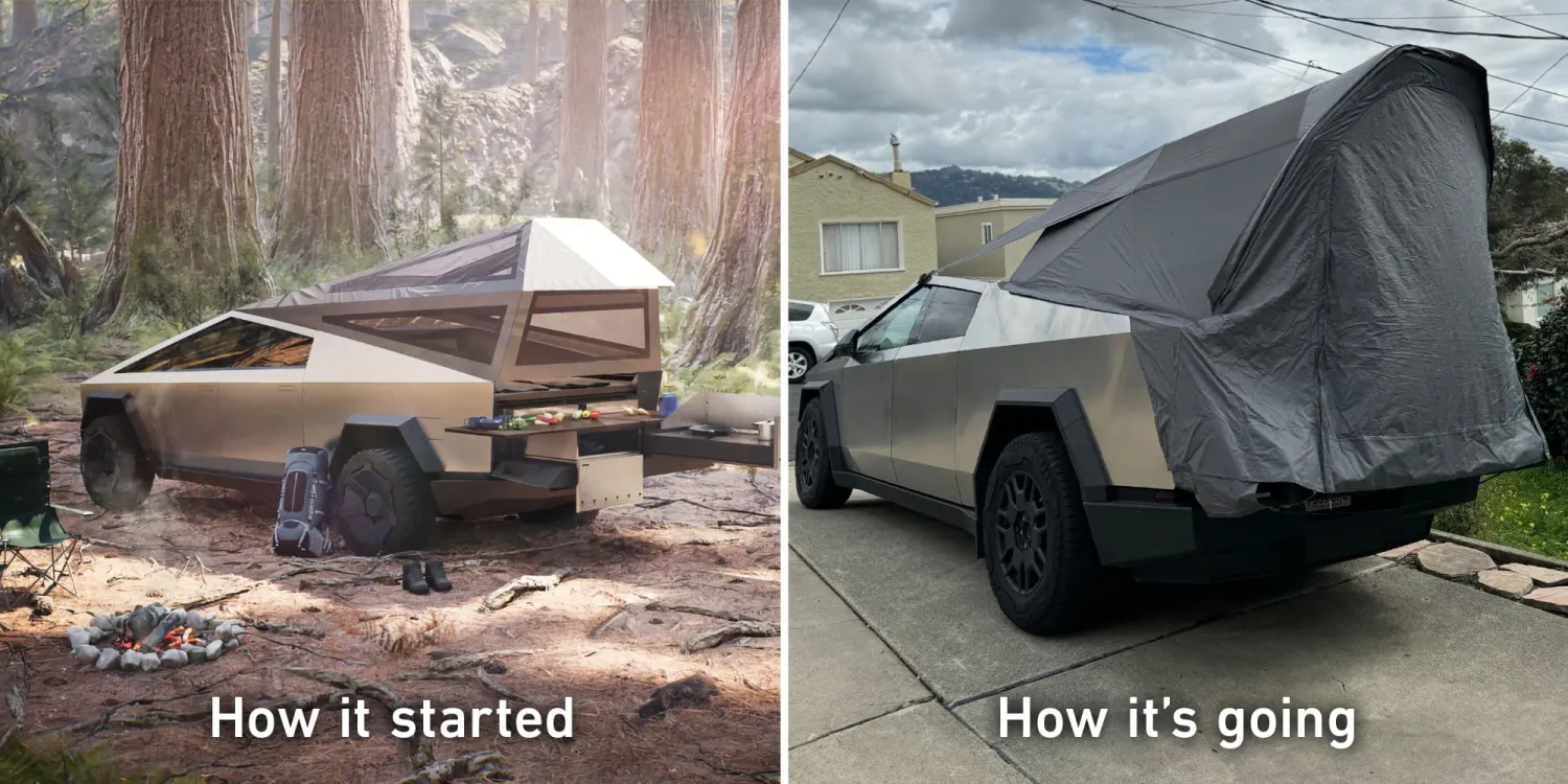 特斯拉开始Cybertruck 帐篷的交货,看起来与公布的完全不同