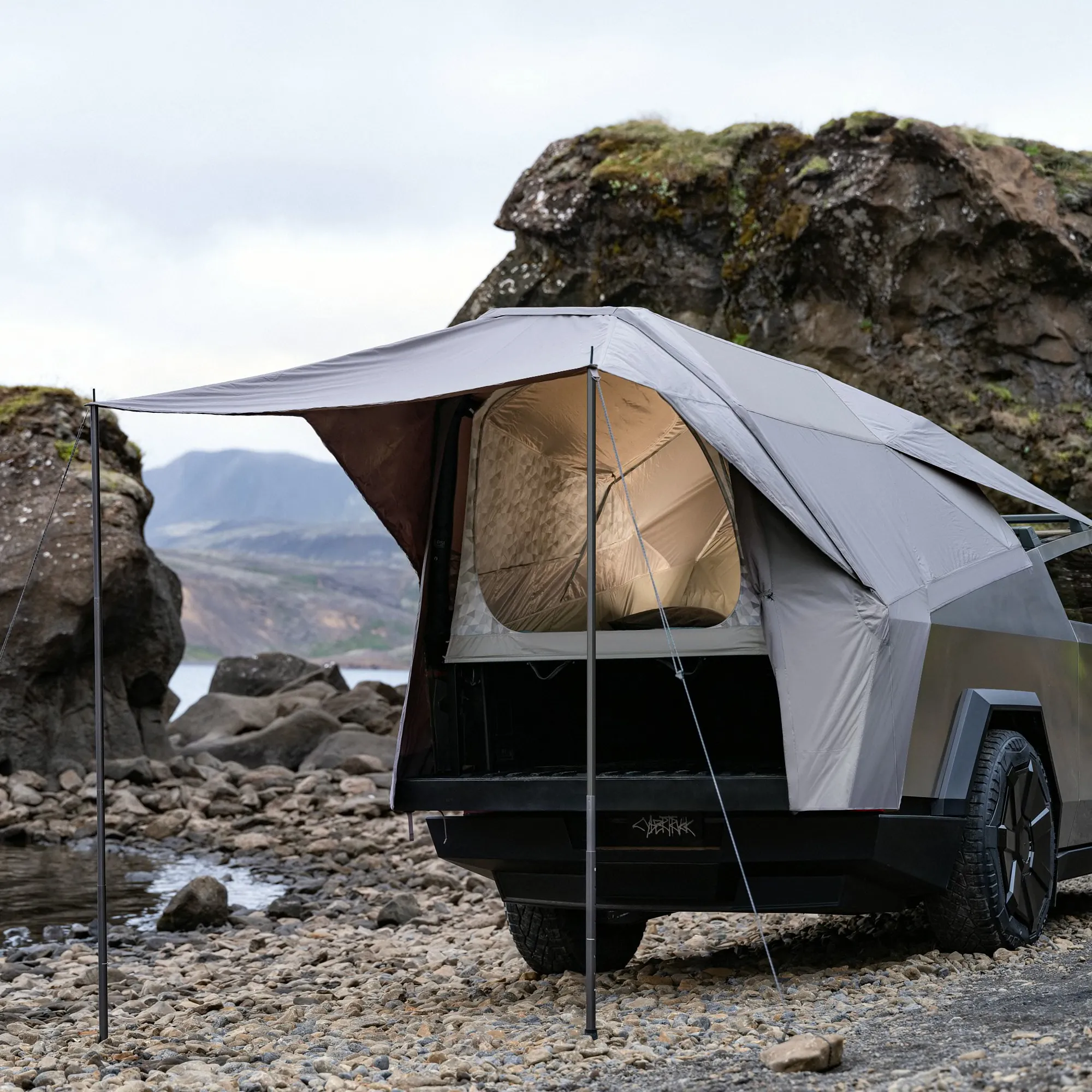 其中之一是 Basecamp,这是一个合适电动皮货车后部的帐子。它是在 2019 年 Cybertruck 初次露脸时初次宣告的。这看起来是一个风趣的规划,看似刚性的下半部分与货车的规划相匹配。